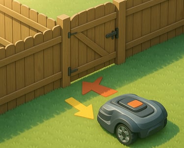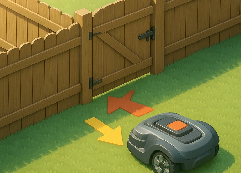 When the mower reaches a closed gate, it gets stuck, leaving parts of the lawn uncut and defeating the purpose of automation.